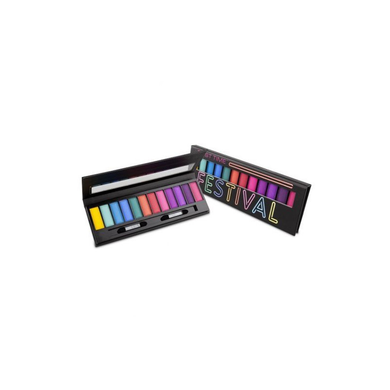 - Fard à paupières First Time 12 festival Palette avec 12 couleurs différentes dans un seul emballage.