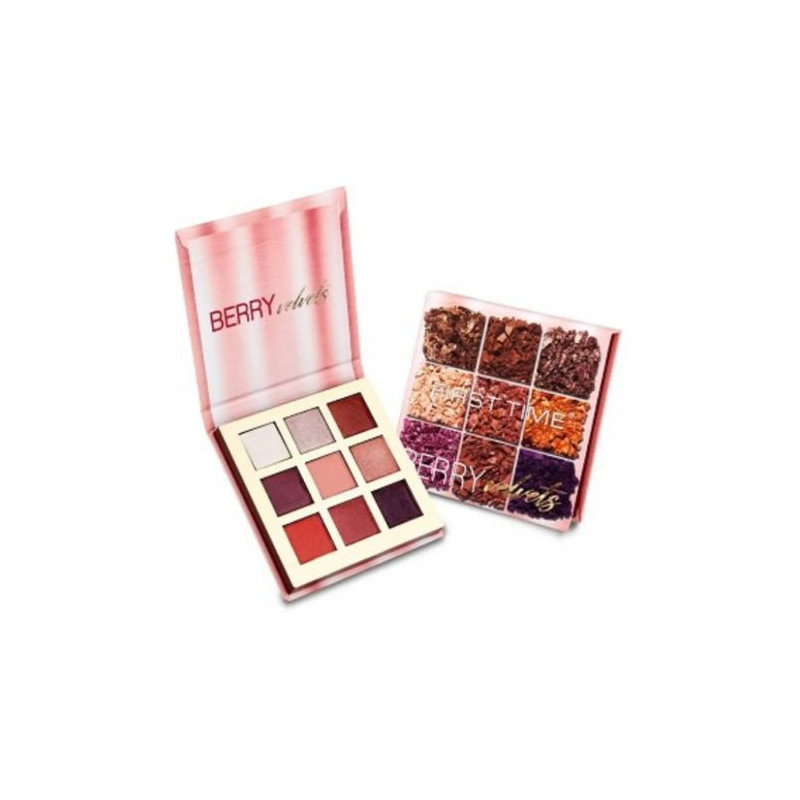 - Fard à paupières First Time Berry velvets Palette avec 9 couleurs différentes dans un seul emballage.