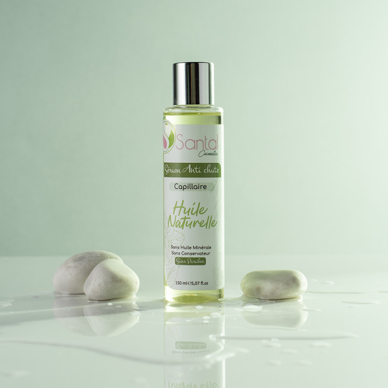 - Huile de Nigelle Avec sa formule naturelle, l’Huile anti chute de Santal stoppe la chute et stimule la pousse des cheveux.